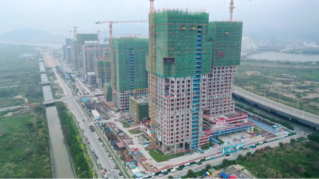 2023年4月25日,由大橫琴置業(yè)有限公司投資建設(shè)的橫琴科學(xué)城(二期)標(biāo)段二項(xiàng)目迎來首棟SA4號樓138.8米超高層結(jié)構(gòu)封頂,同時(shí)也是橫琴科學(xué)城產(chǎn)業(yè)園首棟超高層封頂,項(xiàng)目至今已累計(jì)完成6棟結(jié)構(gòu)封頂,接下來將進(jìn)入全力沖刺剩余3棟SA1、SA2、SA3號樓超高層(其中最高棟SA3號樓為180米)結(jié)構(gòu)全面封頂階段。