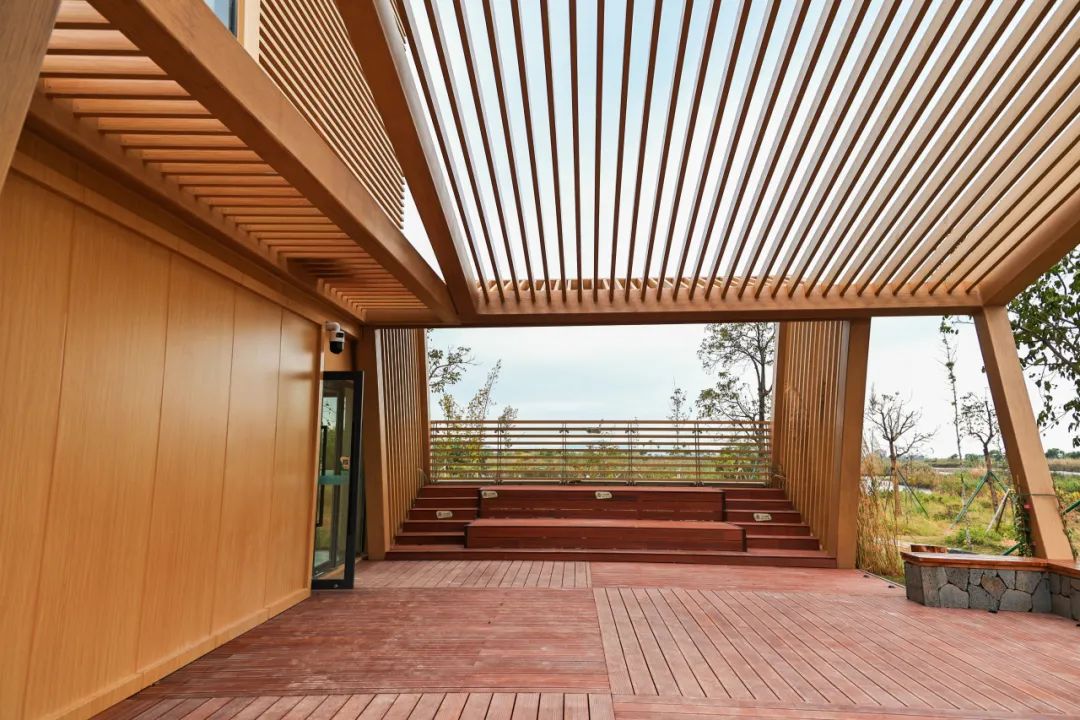 科普宣教中心以自然為本,維護(hù)生物多樣性和生態(tài)系統(tǒng)代表性,展示橫琴濕地的自然與人文風(fēng)貌,將為來(lái)訪者呈現(xiàn)一場(chǎng)沉浸式“生態(tài)發(fā)現(xiàn)之旅”。一樓的戶外教室與自然教育徑銜接,從室外平臺(tái)可直達(dá)自然教育徑,進(jìn)入濕地公園深處觀察濕地植物。而在二樓觀景平臺(tái),可眺望到濕地公園的紅樹林、水鳥生態(tài)島等景觀。