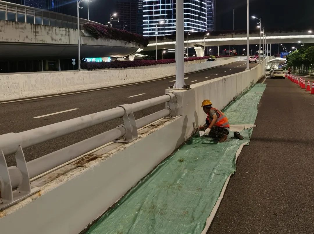 道路、橋梁作為基礎(chǔ)交通設(shè)施,也是城市景觀的重要組成部分。為打造靚麗舒適的出行環(huán)境,大橫琴城資在港澳大道立交主線橋及匝道、濠江路立交主線橋及匝道進(jìn)行防撞墻和引橋擋墻的打磨、找平、刷漆等養(yǎng)護(hù)作業(yè),施工面積達(dá)20000㎡,在美化通行環(huán)境、提升路容路貌的同時,切實(shí)消除安全隱患,提升了道路通行安全系數(shù)。