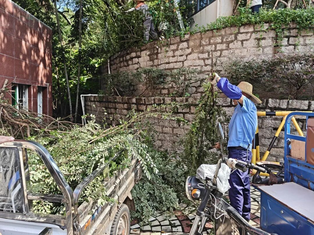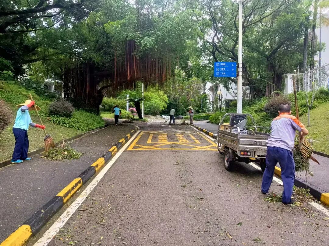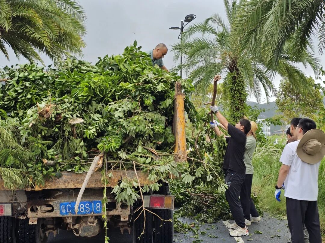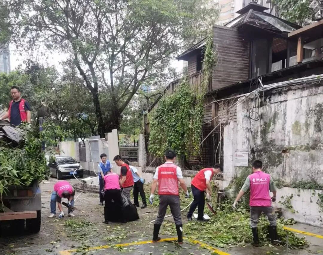 9月25日,珠光集團(tuán)黨委嚴(yán)格落實“雙報到”機制,主動對接社區(qū)需求,迅速啟動集團(tuán)黨員先鋒突擊隊中的13支小分隊前往拱北街道華僑社區(qū)及灣仔街道作物社區(qū)、富興社區(qū)、桂圓社區(qū)、灣仔社區(qū)等社區(qū)開展清理倒伏樹木的殘枝落葉、排查安全隱患等工作,保障車輛與行人安全通行。